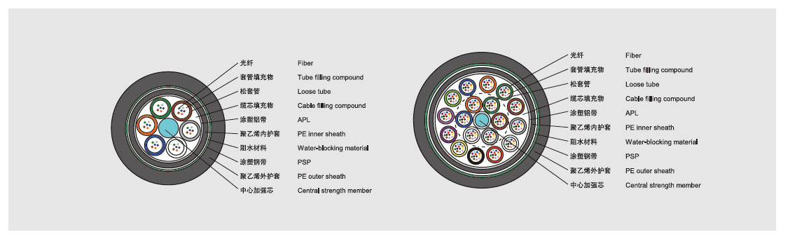4~144芯室外层绞式加强铠单模光缆(9/125) |